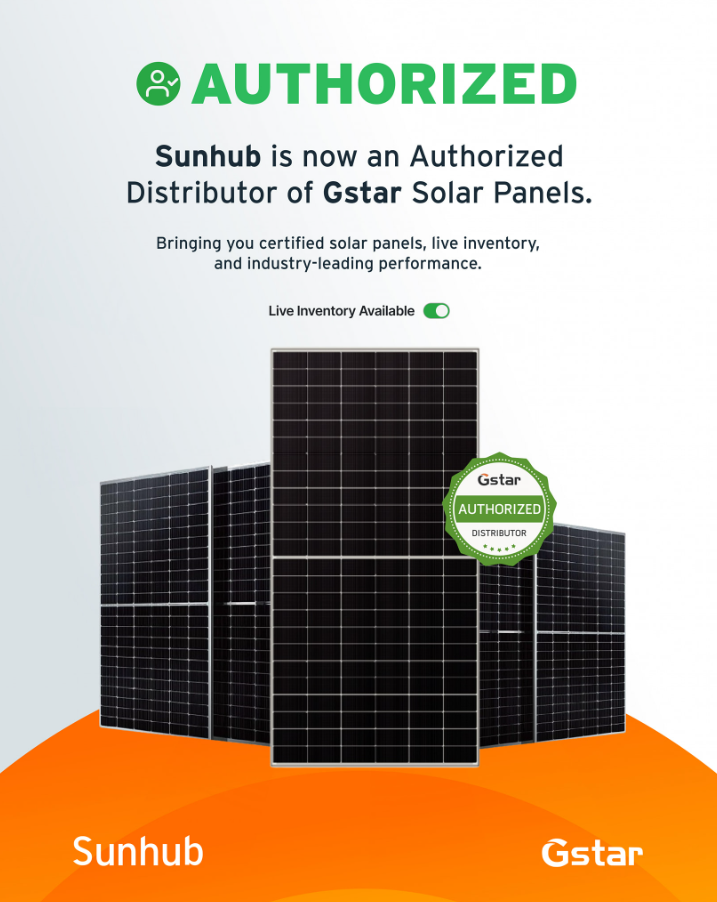 Gstar brings certified, high-performance panels with TOPCon and mono PERC options. Sunhub’s distributor status ensures warranty-backed, competitively priced modules with fast availability.